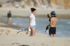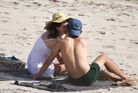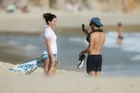 Del Rey at the beach with Francesco Carrozzini in St. Barts, France.